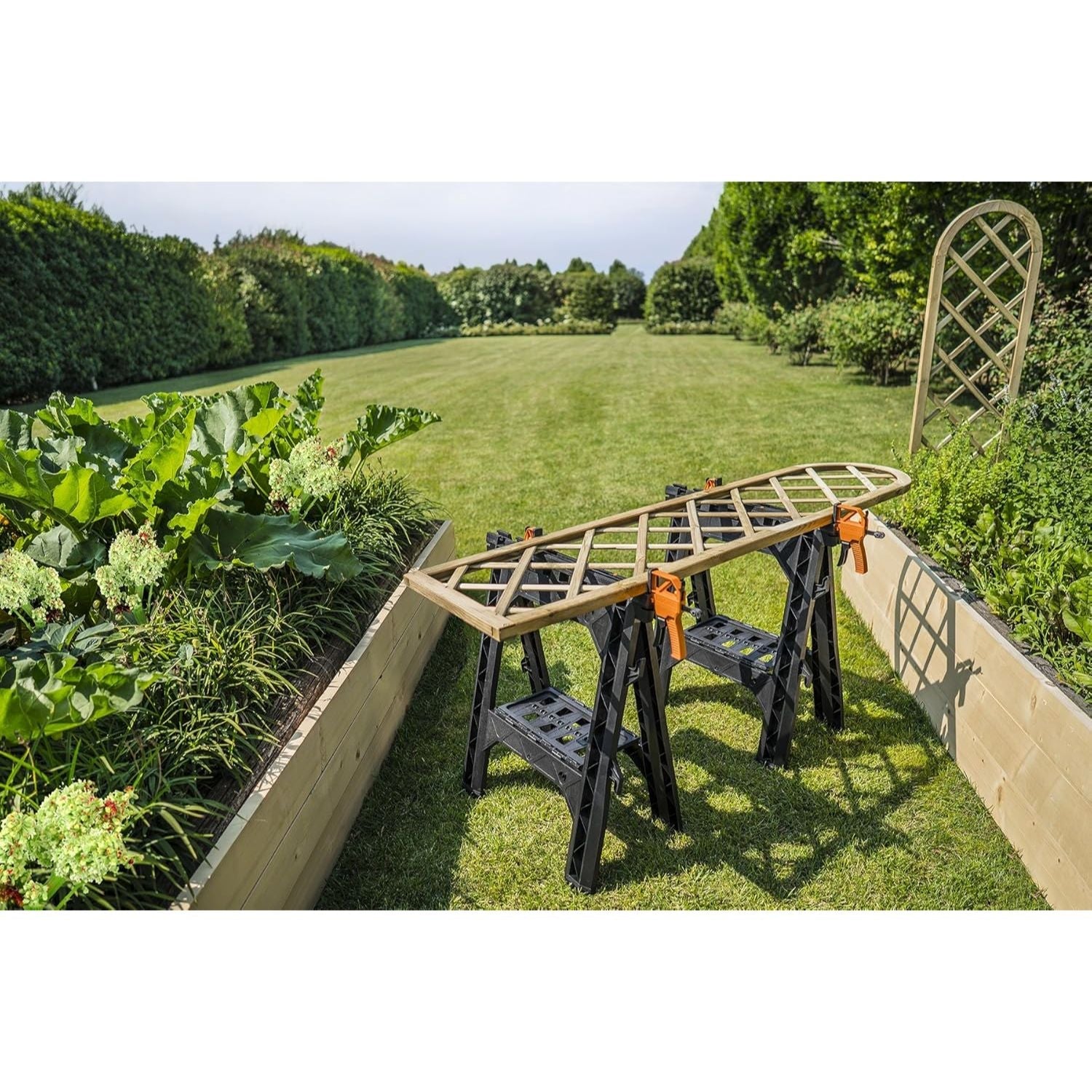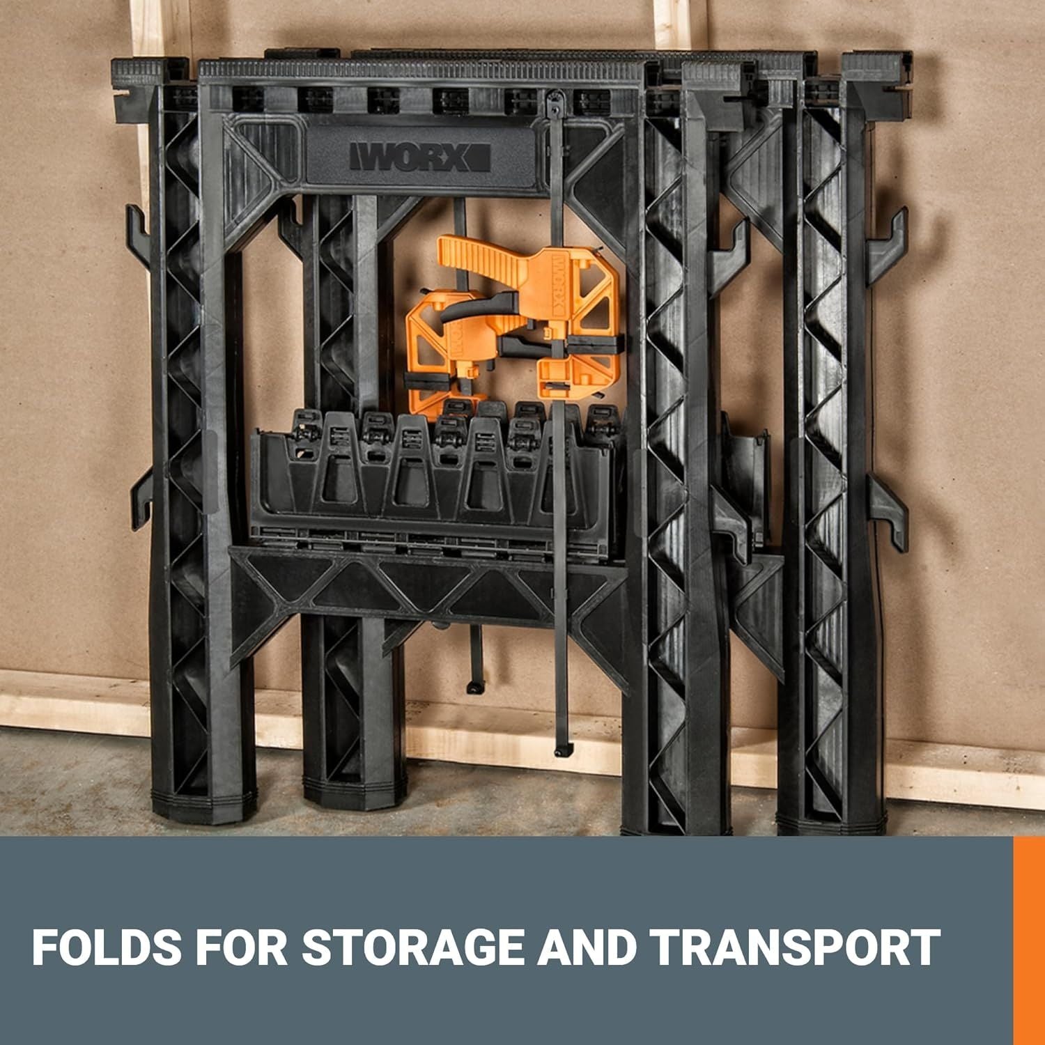 Say goodbye to slipping projects! These smart sawhorses come with custom bar clamps that hold everything tight — big or small, vertically or horizontally. It’s like having a super-strong helper who never complains! 🦾✨
